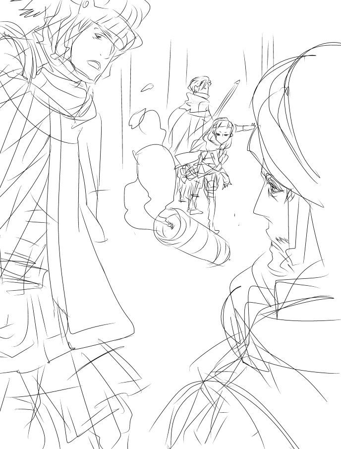 乱暴に執務室の扉を開ける。そこにはやはり何人かの家臣がいて、驚いたようにこちらを見やった。ある者は腰が引けてあわあわと逃げ出し、ある者は果敢にもこちらに剣を向ける。