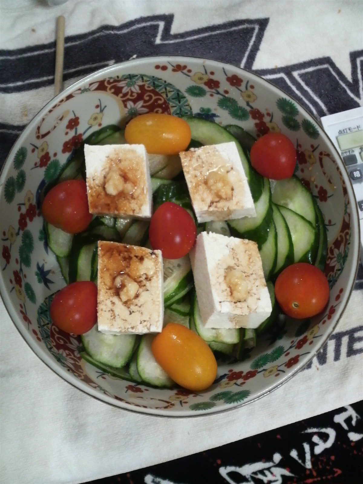豆腐胡瓜ミディトマト塩生姜ポン酢サラダ