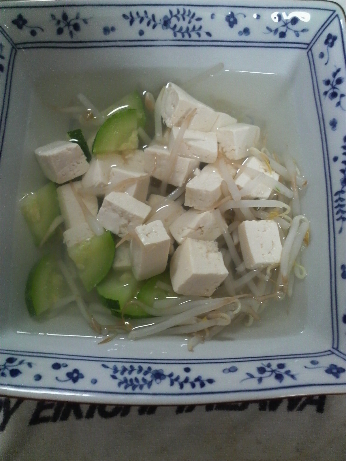 豆腐もやしズッキーニ塩大蒜昆布出汁スープ
