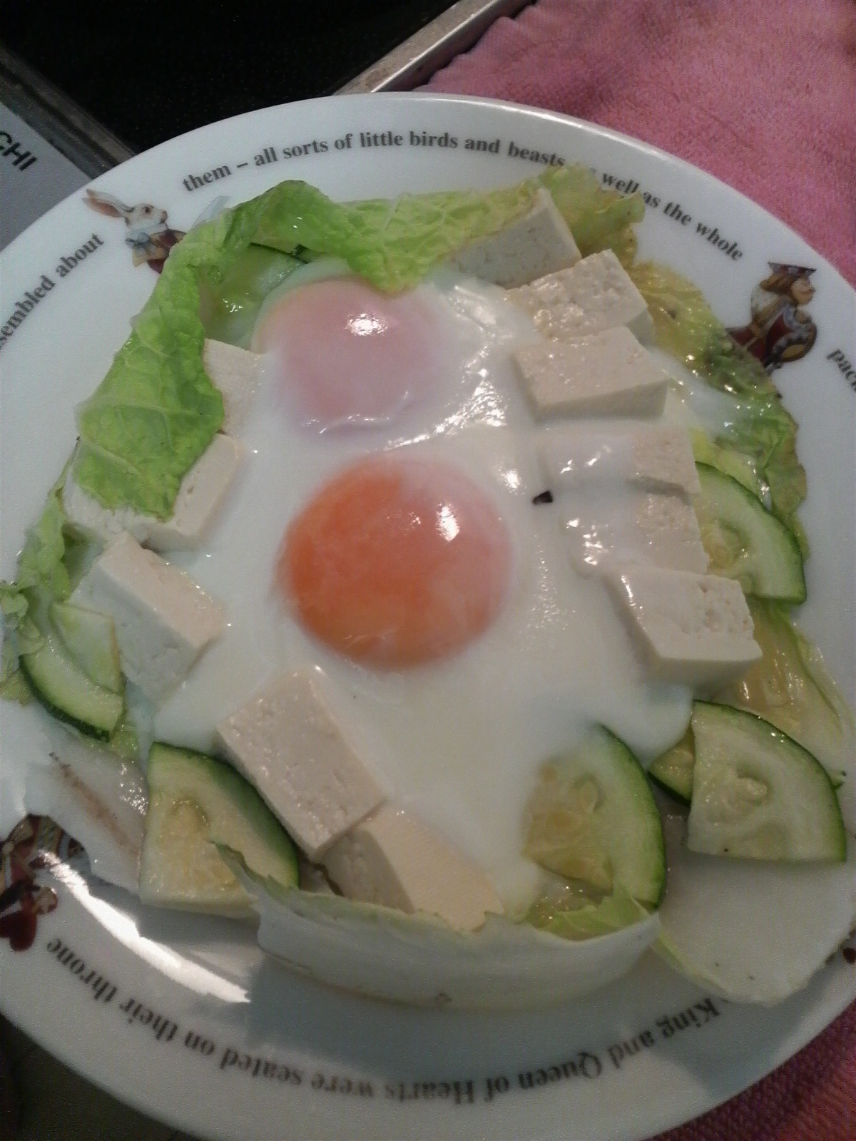 白菜豆腐ズッキーニ塩味の素目玉焼き