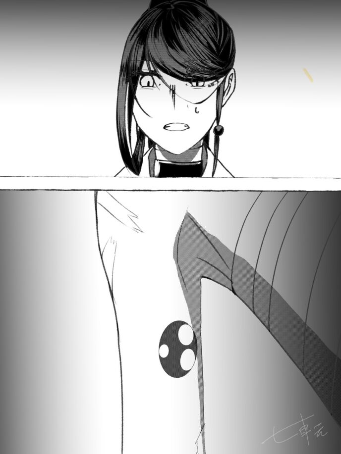 少年の脇の近くに、黒い縁の中に丸を三つくりぬいたような、コウモリの形をした刺青が描かれていた。その紋様を見て天月は即座に、その一門の名前を呟く。