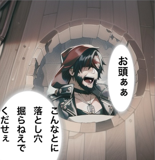 子分 お頭~。こんなとこにひみつの落とし穴なんて作らねえでくだせぇ~。