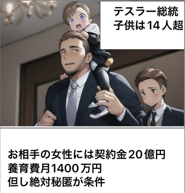テスラー お前の事は調べがついている。JKなんだから、いくらでも子供は産めるだろう!