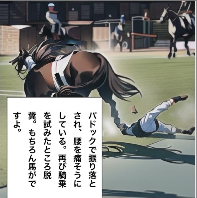 しかし名騎手ルメールでさえ、パドックで馬に振り落とされた事がある。未勝利3歳馬のバロネッサがパドックでややパニック気味に。落馬して腰を痛そうにしながら2度目の騎乗をしたルメール。しかしここでバロネッサは脱糞。