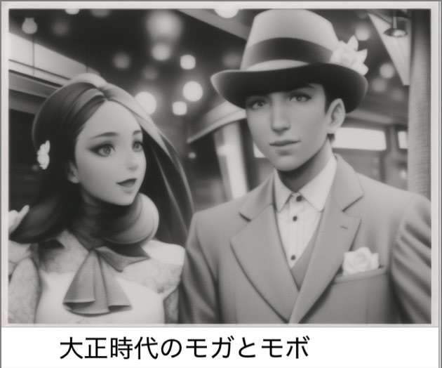 「今から百年くらい前、日本で『モガ(モダンガール)』『モボ(モダンボーイ)』って言われるファッションが流行ったよね~」