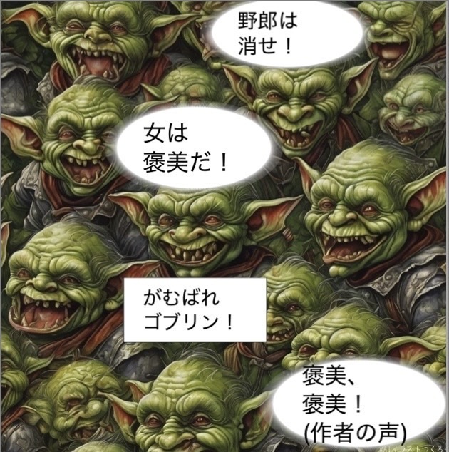 返事はない。強と琢磨はゴブリンに取り囲まれている。彼らは『ゴブリン、ゴブリン、ゴブリン』と呪文のように言葉を発しながら剣を構えている。