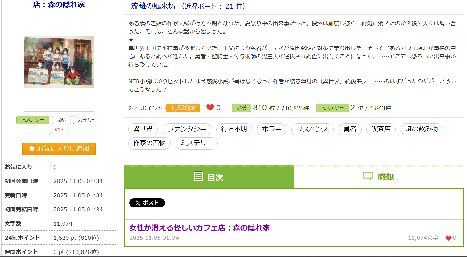 ・アルファポリス:書籍化は24時間1500ptで達成できます。短編の場合、長編化を要請されたりとのことでした。1時間で消えるボーナスポイントがありますが、書籍化の場合には正規ptとして扱われないようです。1600~1700ptで頭打ちになる感じがありますが気のせいかな。人気ジャンル格差を是正するため、ホラーなど一部の不人気ジャンルにポイント優遇ありです。モチベーションに繋がります。ただし投稿し続けないとアクセスが無くなるので継続できないと厳しいです。お金を得れるインセンティブ(リワード)がありますが、昨年まで不正が多くあって今年からより厳しくなっているようです。イラストは本文中に付けられます。優遇ポイントジャンルを指定して登録しても運営さんが修正しますので繰り返しますと垢バンの刑ですね。(★追記)『~でも投稿しています』という記述はしなくても良くなっています。