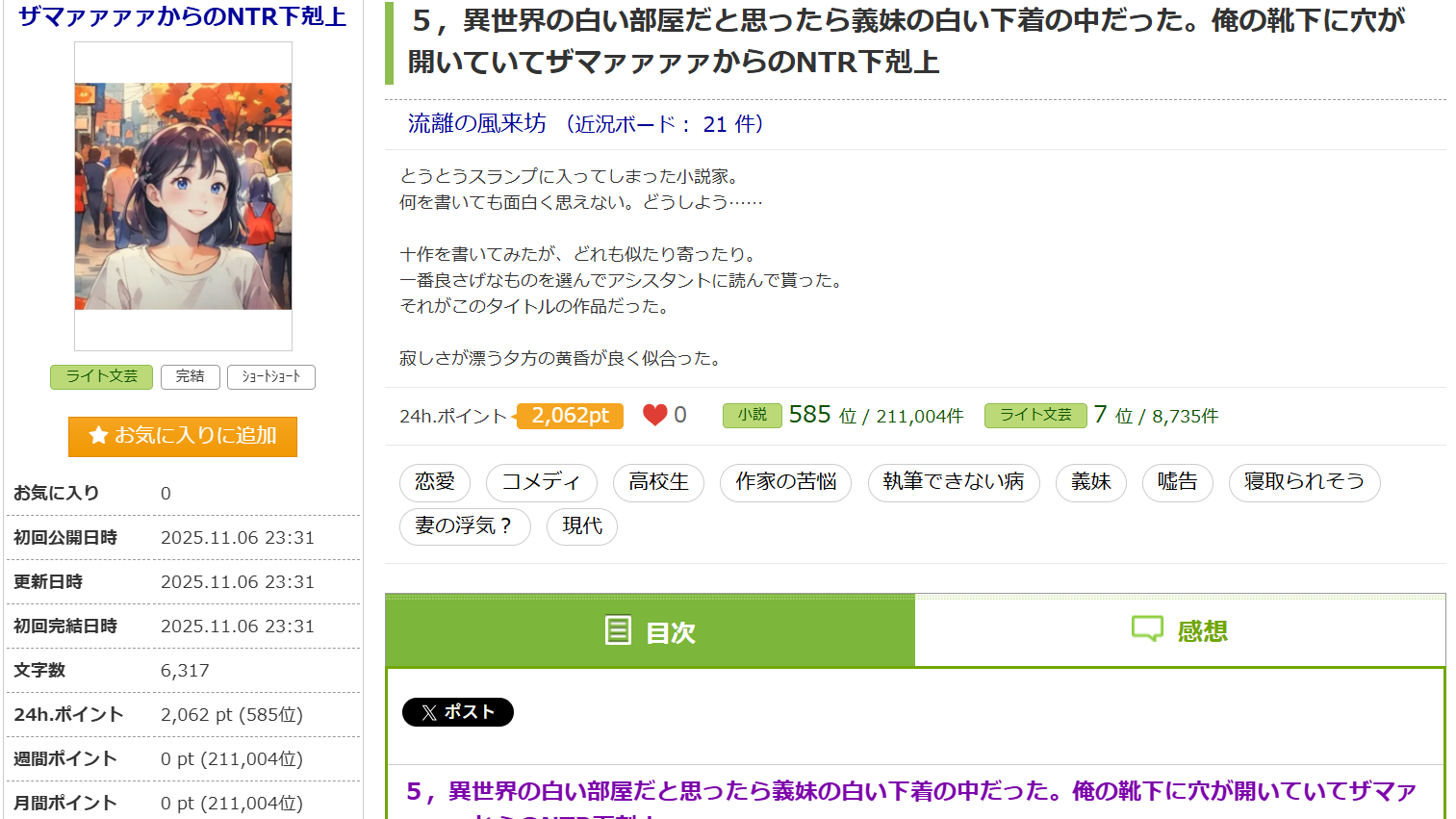 ズバリ説明を書きますと怒られる可能性が出て来ていますので歯に衣を着せますが、コツはその単語やタイトル、粗筋の選択に大きく左右するという事です。時期、流行、いろいろと要素がありますので、その時のタイミングで、最高の効果を得るように少し変えるなり、頑張って下さい。