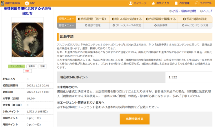 さて、どうすれば書籍化できるでしょうか。内容を良くして編集さんの目に留まる事、コンテストで入賞する事、確かに良いルートです。ではアルファポリスさんの1500ptクリアーの方法は?