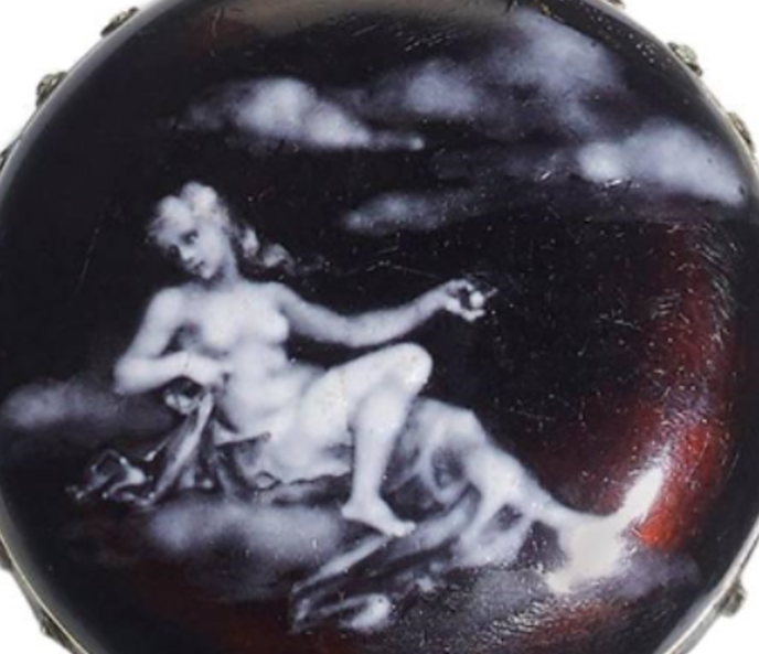 ↓ ティファニーの宝飾ペンダントに描かれた魔性の女性(女神?)エナメル