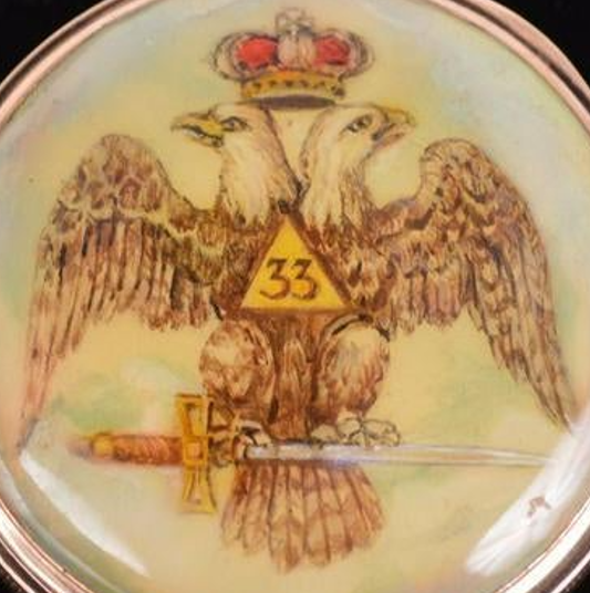 ↓ フリーメイソン33(最高階位)のエナメル絵画(金無垢ペンダント)