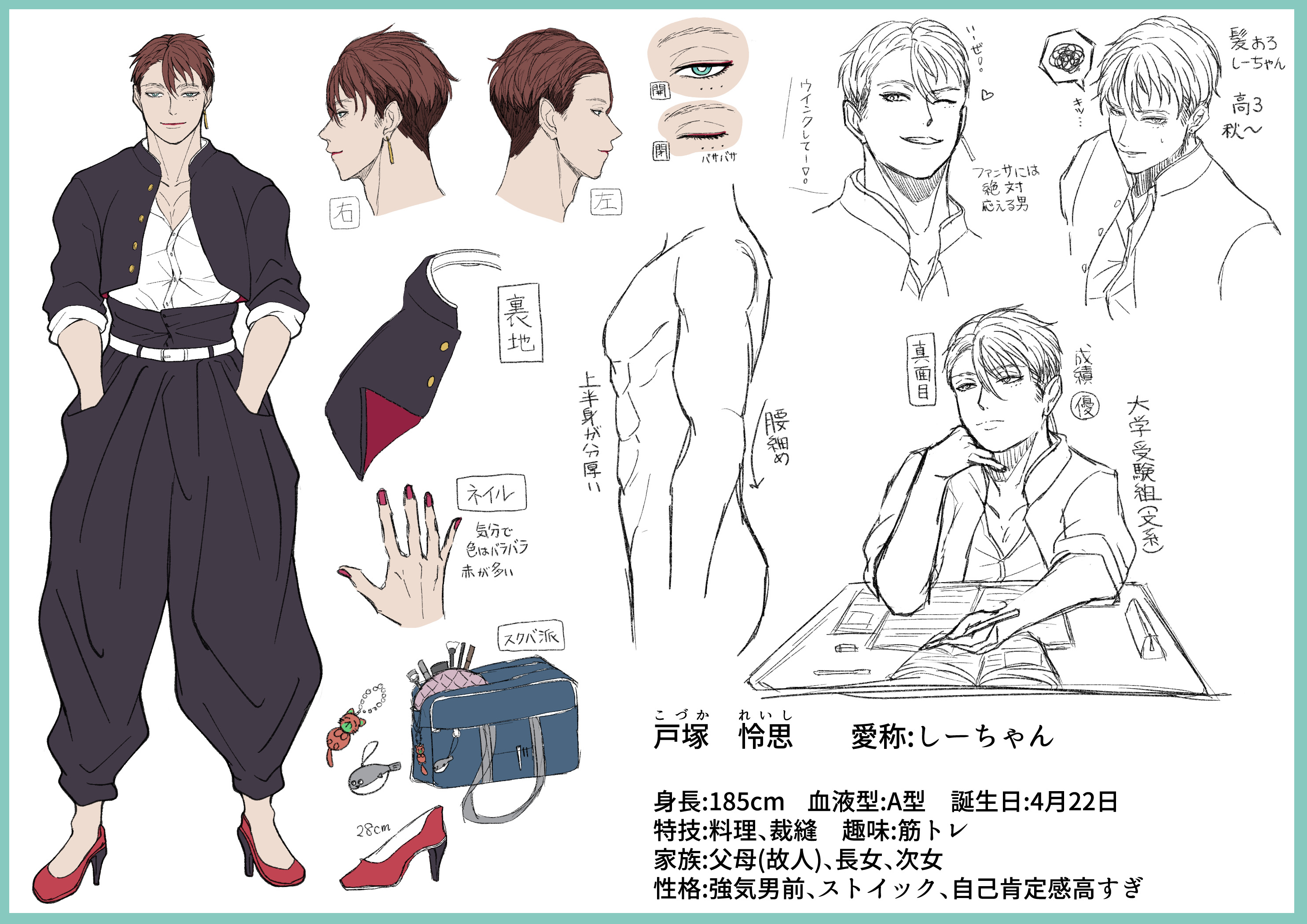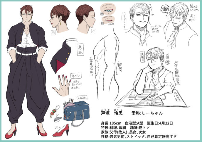 真面目だが強気で、どこか挑発的な笑みを浮かべる青年。