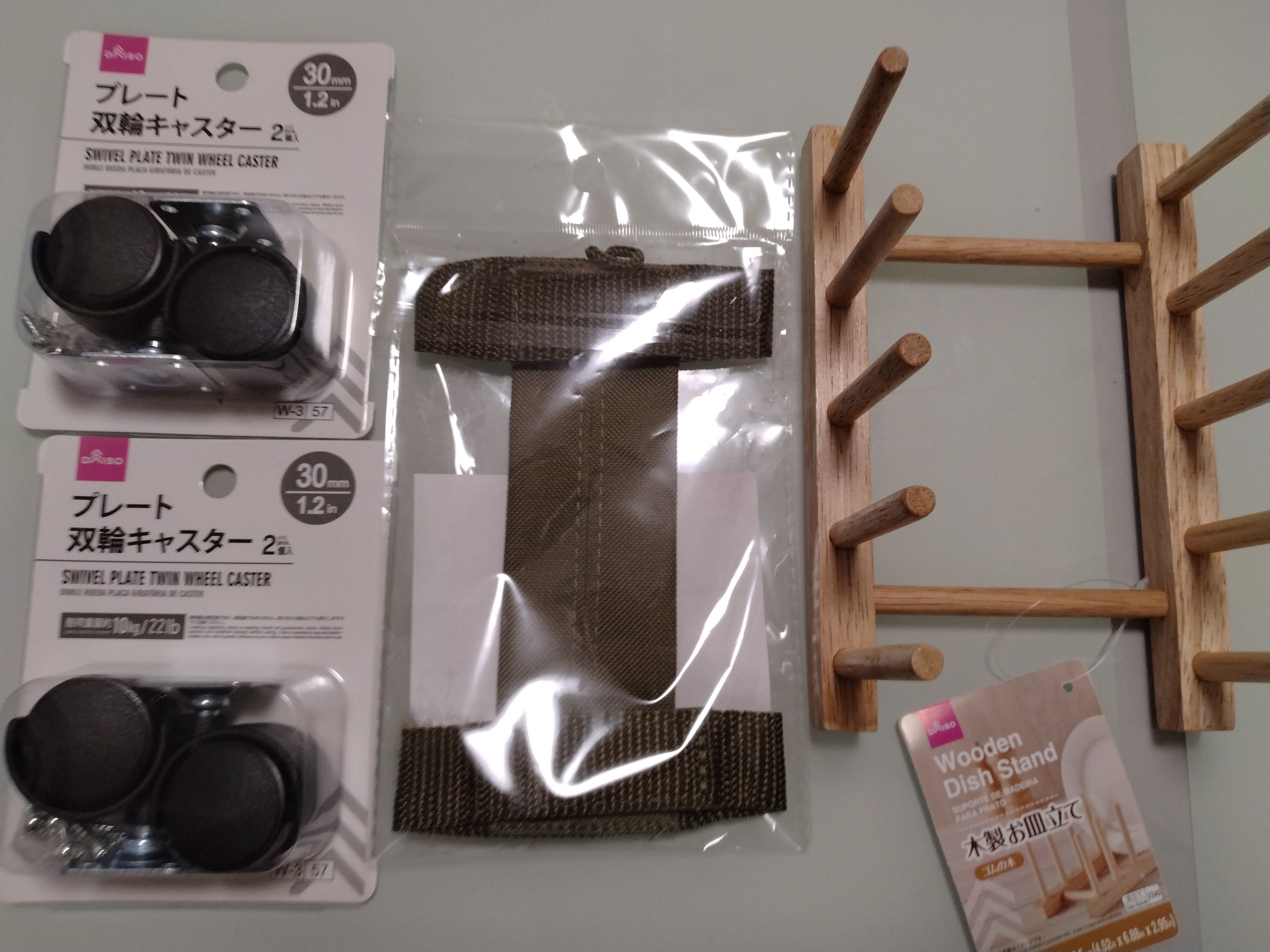 …真ん中のドリンクフォルダーは使いませんでした(笑)はい、全てダイソーで揃います。