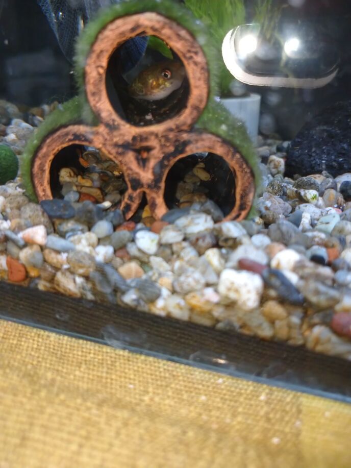 私は現在、フグの世話係として実家に来ています。せっかくだからフグちゃんお昼寝ショットを……。