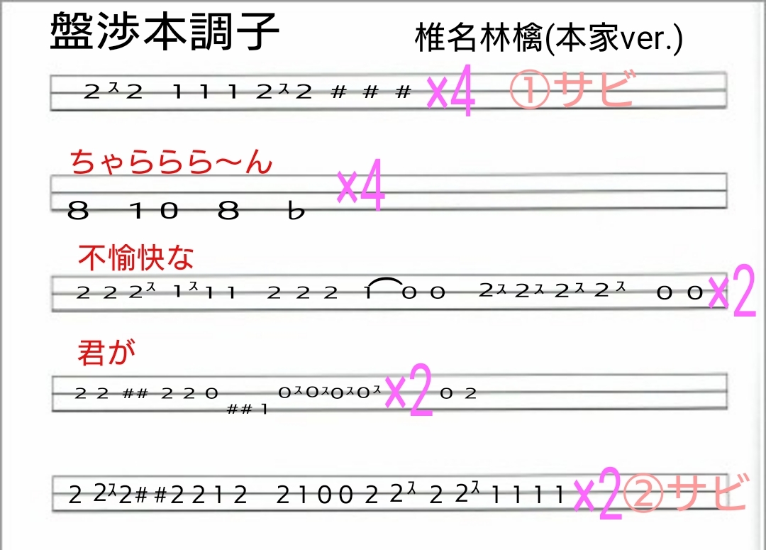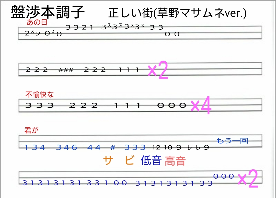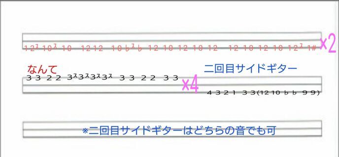 草野さんバージョンのサイドギターですが、最後のね。()の方がカッコいいですが指おろし大変です。ただ、音はこっちに近いかな。