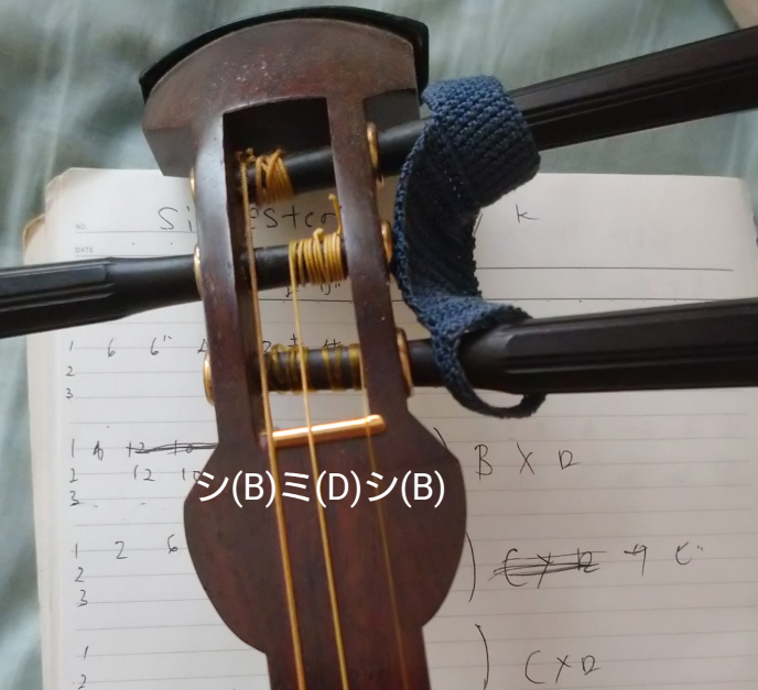 あ、ちなみに私の楽譜ですね、えっと本調子二音上げなので調弦としては