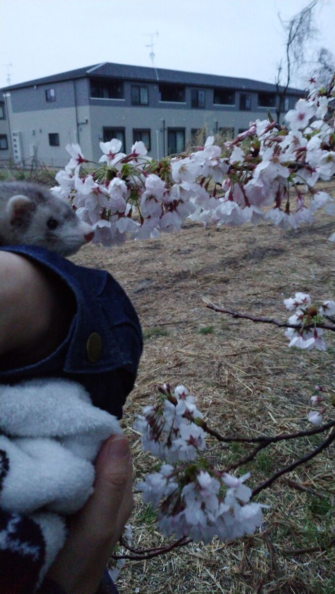 そもそも元は狩猟とかの動物(イタチ)ですが、要するに愛玩動物として品種改良をされてしまったので実はあまりメリットがないらしい。少し複雑ですね。是非とも桜を見せたいなと思いましたが物の数分で帰ってきまして…。