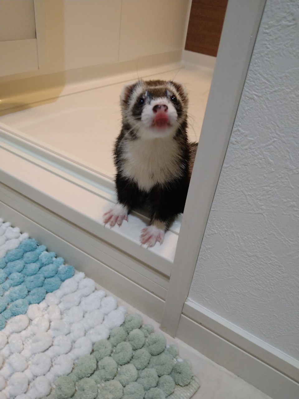 クリクリの目で鼻に少し黒い部分がある。胴長短足で手足の部分はまるで靴下を履いているかのように白く、胸元にもエプロンを掛けたかのように白かった。よく見るとエプロンにはホクロもある。顔はパンダのようだ。
