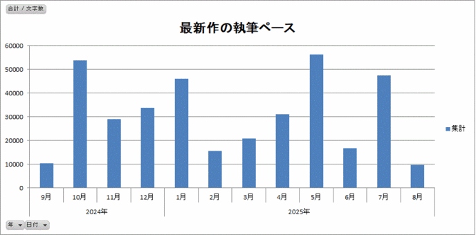 調子いい時は、一月に5万字も書いています。しかし、1万字に満たない月もあります。