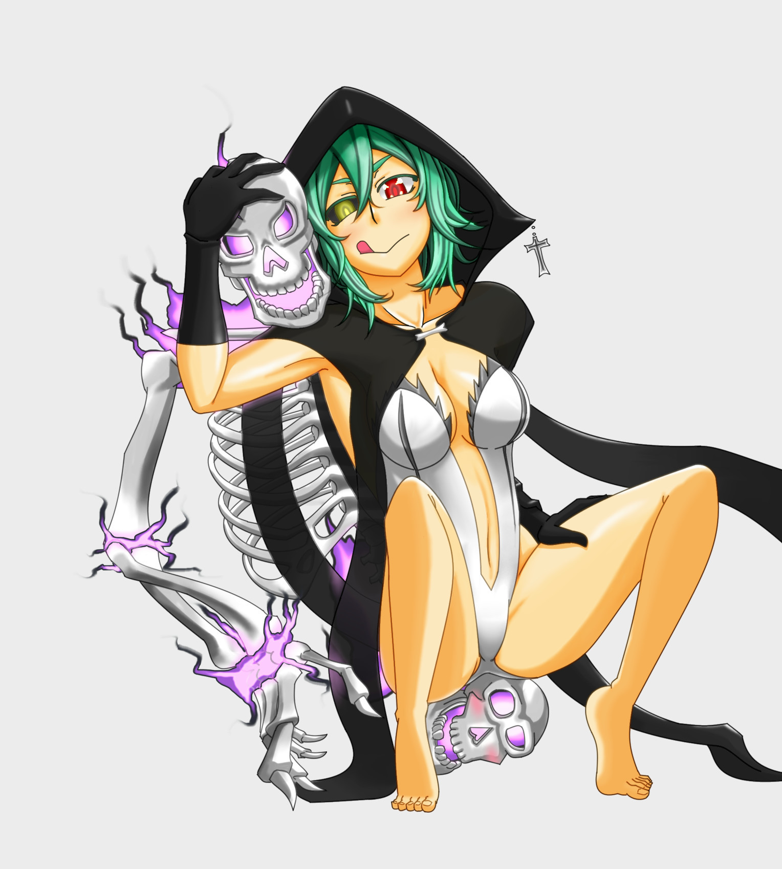満足そうにペロッと舌を出し、スケルトンの頭を撫でてやる女。