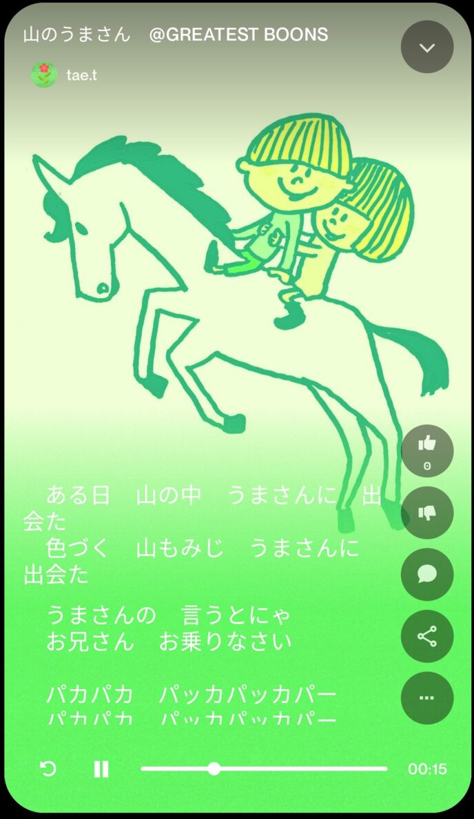リリック 「森のくまさん」に近い童謡っぽい感じになったと思う。その一方で、シンプル言うてるのに複雑な旋律を、作ってきたりする。特に学ぶところはないと思うが、一応載せておく。「山」をやま、でなくさん。で歌うとか、やはりAIくんはまだ未熟。何度も生成回数を重ねると、AIくんも何を出したら良いか分からなくなるらしく、途中結構迷走する。