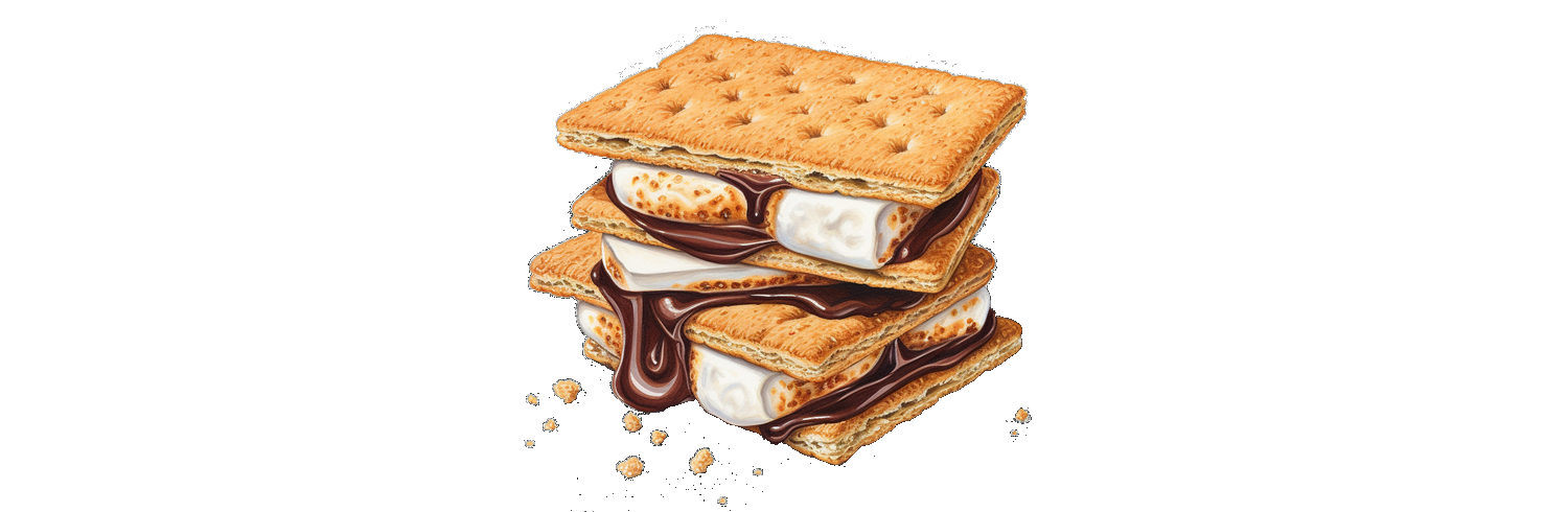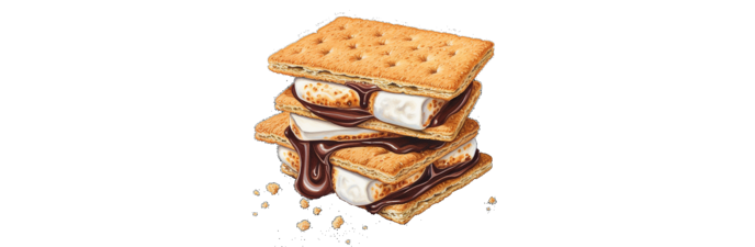 火で炙ったマシュマロとチョコレートをクッキーやクラッカーに挟んで楽しむキャンプの定番スイーツです。