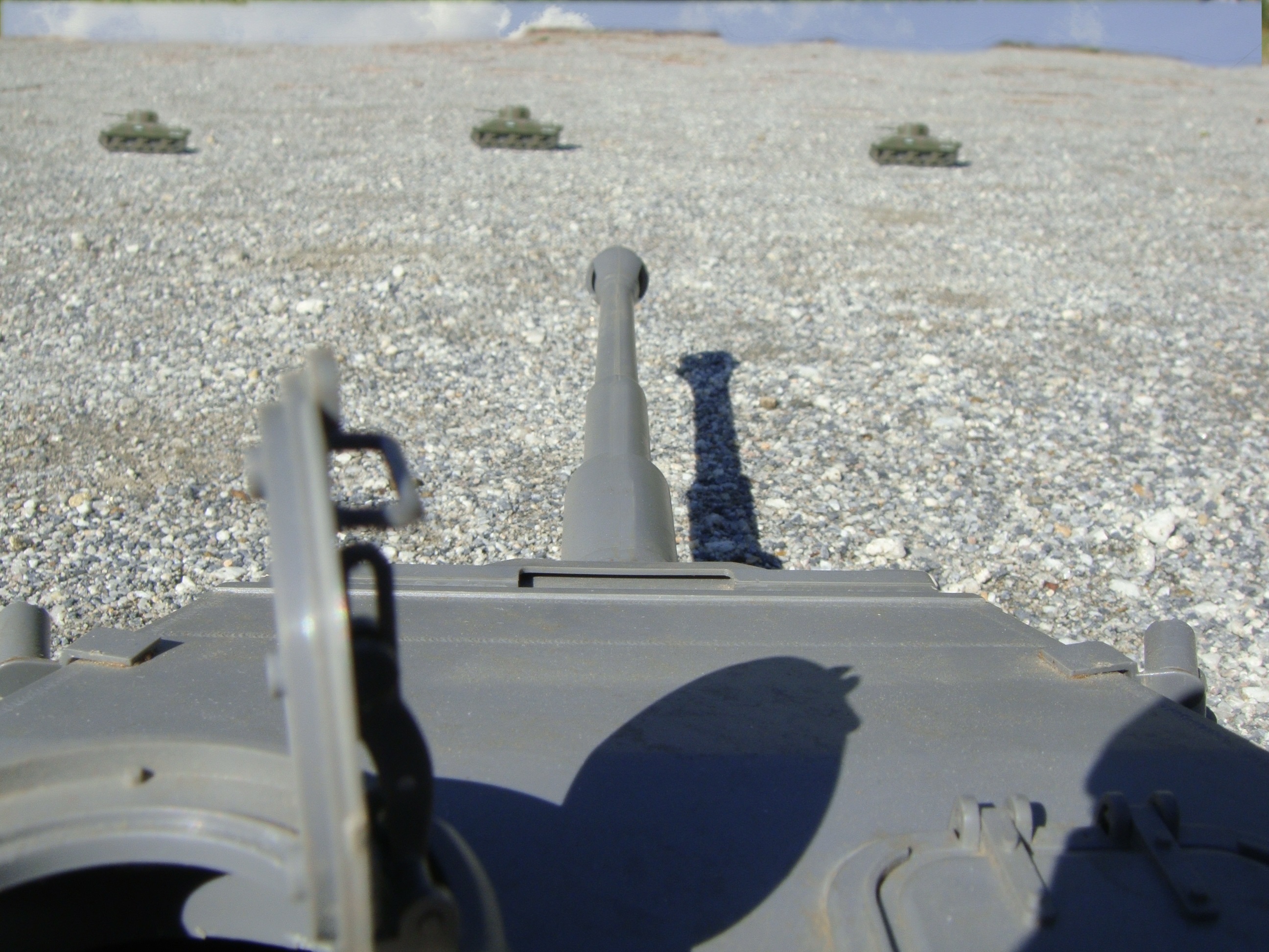 キング・タイガーが3両、列をつくり進んでいる。 40トンが3両だ。 さぞや、砂漠の砂も重かろう。 そして、オトリのシャーマンが先頭で、米軍が進撃する。 ・・・それを、離れたところで、見ている独逸軍のティーガーが1両だ。 「距離は?」 と車長が砲手に問う。 砲手は照準器をのぞいて、「約、2キロですが。」 「うむ、この88ミリ砲の有効範囲だな。」 「そうですが、相手はうごいてますんで。」 「それは、わかっている。」 まだ、追尾予想パソコンなぞ無い時代だ。 砲手のカンと経験だ。 初弾で、最後の列のヤツを一撃で葬らないと待ち伏せの意味がない。 隊列を狙うときは、最後からがいいのだ。 一発で仕留めれば、前のヤツが気がつかないことが多いのだ。 それで、順ぐりに葬れるのだ。 まあ、実際はそんなにうまくいかないが。 「さて、どう始末できるか。」 車長は考えた。 隊長である、ヒューベルト大佐は、「おまえに、まかせる好きにしろ。」 との指示だ。 こちらは、停車しての砲撃だ。 まず、外さないと思う。 だが、砲手は、「ヤツら40じゃないですよ。」 「どれほどの速度だ。」 「先頭の偵察は50はでてますね。」 「まあ、どうみても軽戦車だからな。」 「それに、シャーマンは速度は以外に・・・」 「まあ、この2000メートルの距離では、弾道がソレることもある。」 「おまえの、腕を疑うことはないから、失敗するつもりで、軽くでいいぞ。」 あまり、砲手に、外すなというと、緊張して外してしまうのだ。 射撃でもそうだ。 遠方を狙うときはリキムとハズすのだ。 まあ、当らなくても、どうでもいいは、との気持ちで撃つと、以外に当るのだそうだ。 「では、行きますよ。」 「おぅ、では、ファイアー。」 「ドウウウンン。」 ヒューンと弾が見える。 イヤ、見えないから。 そして、ビリケツのシャーマンの遙か後ろで爆発だ。 「すんません。」 「惜しかったな。」 「あと、10センチだった。」 と砲手をなぐさめた。 そして、無線で「こちら、ティーガーワンだ、初撃は外れた。」 「本部、了解。」 「さて、おもしろくなるぞ。」 車長は米軍との戦車戦を楽しんでいた。 アウトレンジから狙うのは卑怯だ、との独逸騎士道魂の車長であった。 「残りのティーガーが着いてからだな。」 シャーマンは、「しまった、こちらが待ち伏せされた。」 とホウホウの体で、逃げ帰ったのだ。 アヒルに突撃なぞ、日本軍くらいしかヤラせはしない。 米軍は、無理はしないのだそうだ。 なんでも戦死者の遺族への保障がバカにならないらしい。 さて、米軍VS独逸帝国の戦車戦はこうして振りだしに戻ったのだ。