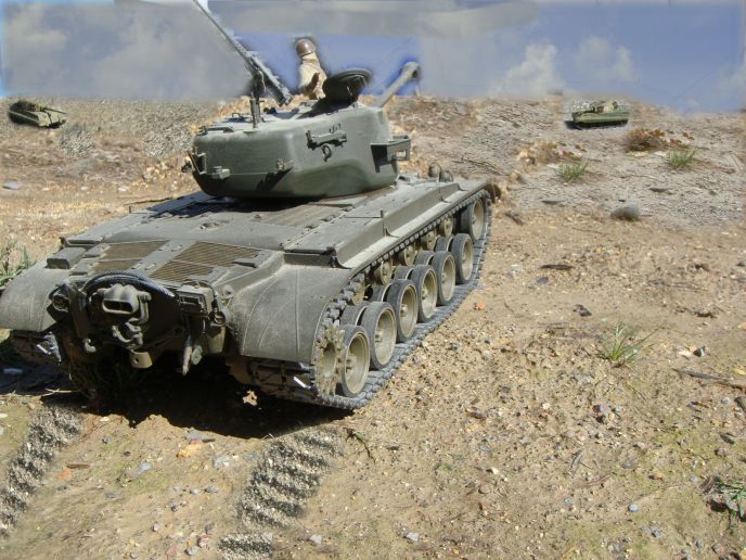 「いいか、外すなよ。」 車長が砲手に指示を出す。 「わかってますが、相手も動いてるんで。」 と砲手は慎重だ。 現在の、パソコンによる装置が無い時代は砲手の腕が、すべてなのだ。 「用意よし。」 砲手が叫ぶ。 「ファイアー。」車長が叫んだ。 「ドウウウウンン。」と90ミリ砲が吼えた。 まじ、初弾から当るなんてねえよ。 そう、砲弾は、惜しいところをかすめる。 そして、遙か後方で、爆発した。 独逸軍も、さすがに気が付く。 「やはり、狙われたか。」 自身の戦車と爆発の延長先をさがす。 「いたぞ。」 ・・・「いかん、場所が特定された。」 「すぐに、移動だ、やつら斜めにむかってくるぞ。」 米軍のM26の車長は緊迫する。 斜め走行は、戦車の装甲がM26からみて斜めだ。 つまり、こちらが撃っても、刎ねたり、斜めの角度で、装甲が分厚くなる効果があるのだ。 キング・タイガーで、10センチの装甲で斜めでは、M26の90ミリ砲では無理だ。 「やつら、こちらを知ってやがる。」 「こちらは、1両だ、逃げるぞ。」 それが、正解だ。 相手の独逸は6両だ。 速度は互いにトントンだ。・・・ 「追跡ヤメ。」 キングの車長は即断した。 この距離で、速度が互いにトントンで、相手はスタコラサッサでは追いつけないからだ。 「ヒヤヒヤさせやがって。」 「おい、シャーマン狩りだ。」 独逸軍はアヒル狩りに作戦変更だ。・・・・こちらは、アヒル軍団だ。 「M26はどうした。」 「うむ、さきほどの砲撃で、それから聞えないが。」 車長が、背をのばして、偵察だ。 「ヤバイ、外しやがったな。」 「即、離脱だ。」 「方向は?」 操縦手が聞く。 「まてまて、ん、いかん。」 北から、ティーガーだ。 南からキングが1両だ。 「東だ。」 「そちらは、独逸軍方向ですが。」 「あ、あ、そうか、では。」 「しまった、ハメられた。」 そうだ。 6両で、アヒルを囲う作戦だ。 焦る、アヒル軍団だ。 囲まれては降参するしかない。 どうする、アヒルの車長はトンデモナイことを思いついた。 「独逸軍に向けて、前進全速だ。」 「え、まだ死にたくは・・・」 「いいから、行くんだ。」 「わかりました、やられる前に、突撃ですね。」 ・・・・ アヒルは、虎へ向かって走り出した。 速度は独逸軍より速いのだ。 40キロとなっているが、独逸のキングと競争したらシャーマンが勝つのである。