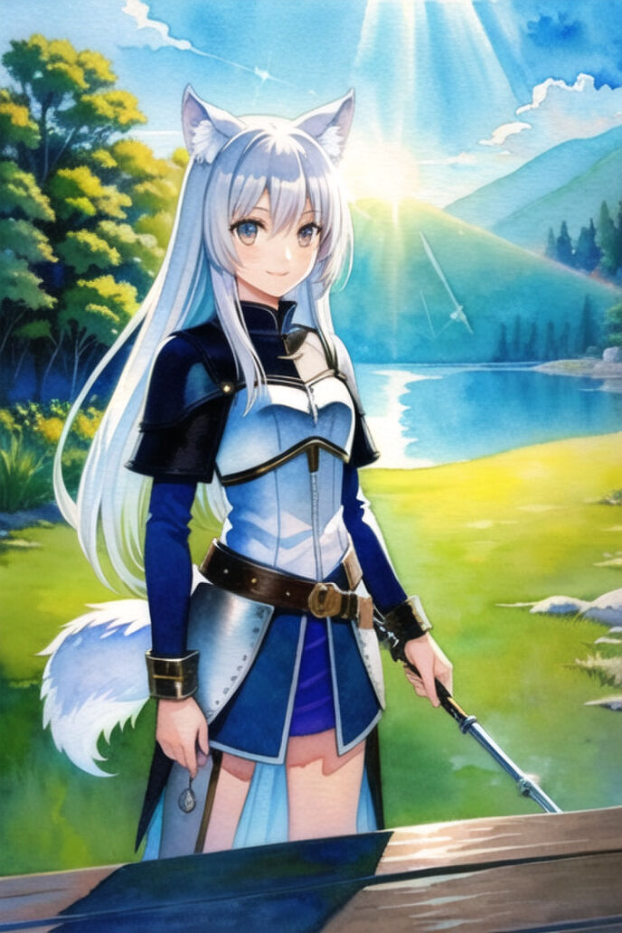 リルフィンはレザーアーマーと、背に銀色の短槍を身に付けていた。