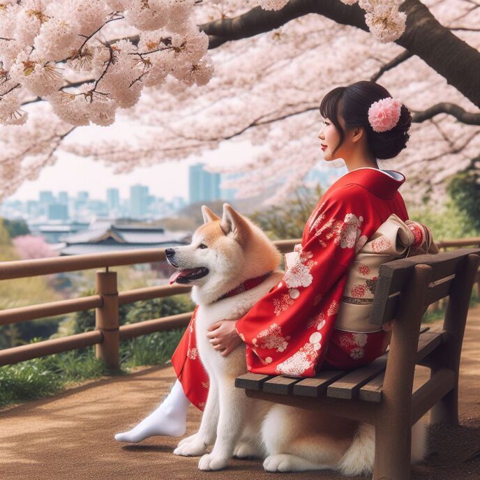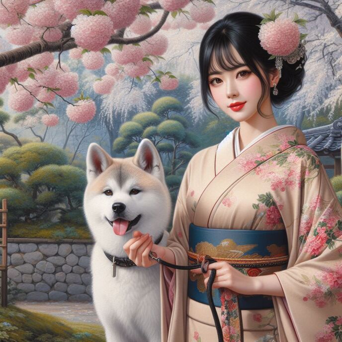 自然な美しい女性と、秋田犬らしいのができました。