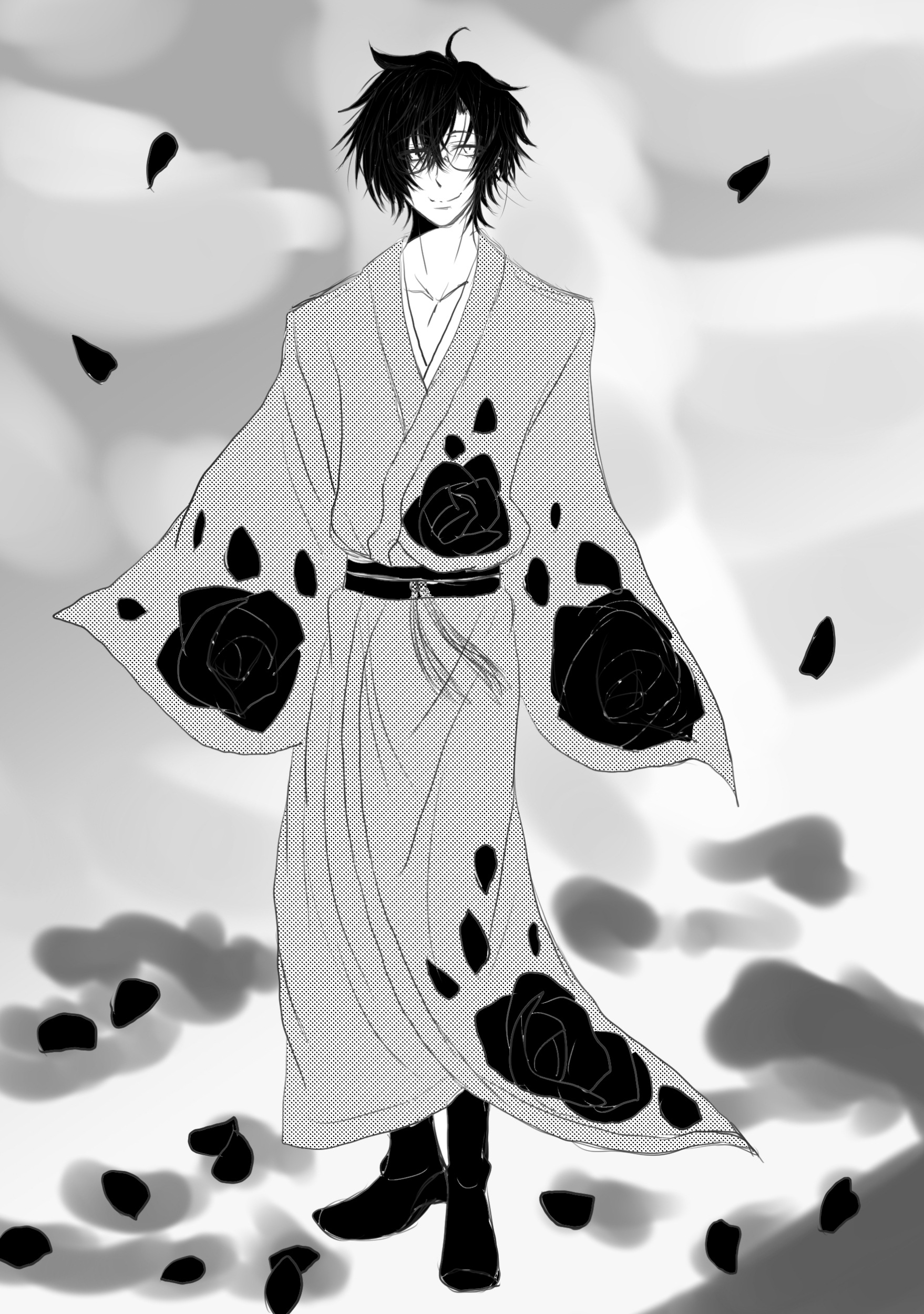 低く優しく温かい声が僕の名前を呼ぶ。振り返ると黒い薔薇の花弁が散らばった空間に螺燈が立っていた。