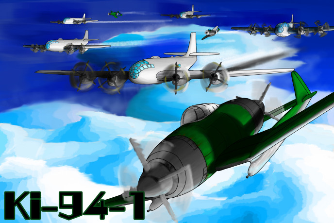 リュ「そして、手前にいる『Ki-94-1』……見た感じでは、『Do335*』同様エンジンを串型に配置している……ということは、その大馬力で上昇力おばけ、かつ速度おばけと考察します」