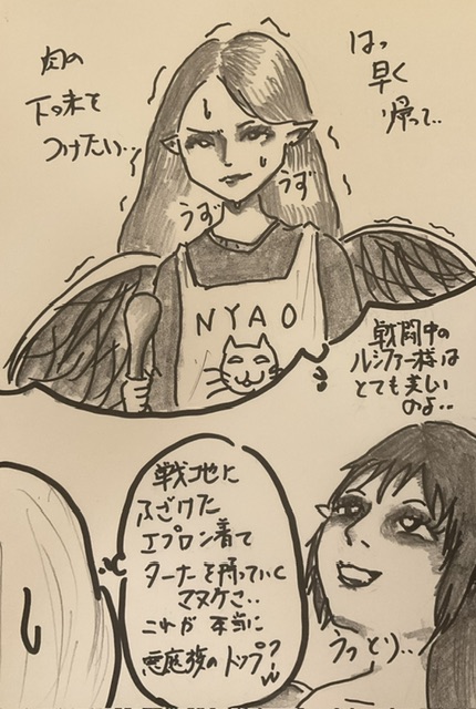 ターニャ「ルシファーはある日、料理の奥深さに魅了されハマってしまいました。要は自分が料理に人生を捧げる以上、部下に何かを強いる事が出来なくなった、というわけですわ」