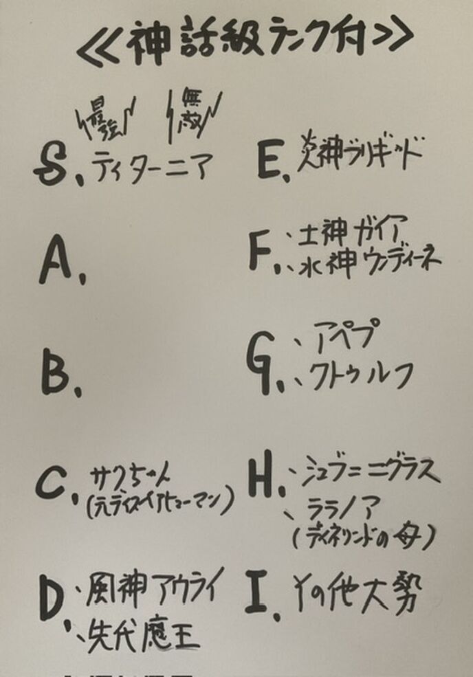 ・神話級ティア表に無敵少女や数字の神セシャトがいないのは、人外の存在だからw