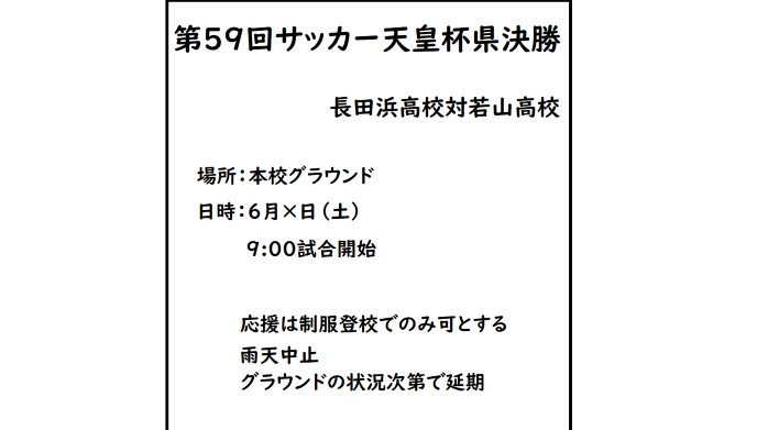 「本当だよ。明日、この学校で天皇杯の県決勝が行われる予定なんだ」