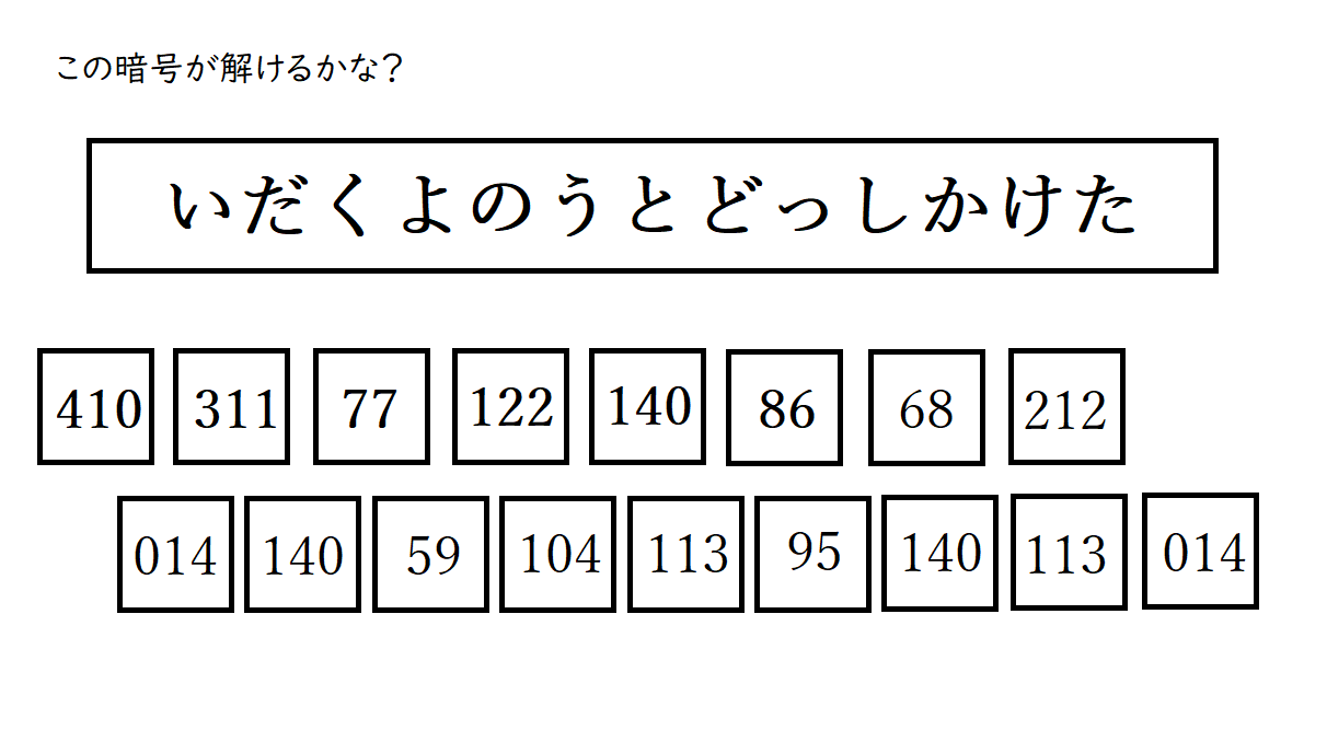 ある日、クラスメイトの家にこんな暗号が投函してあったそうだ。