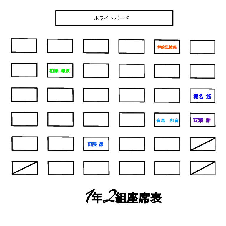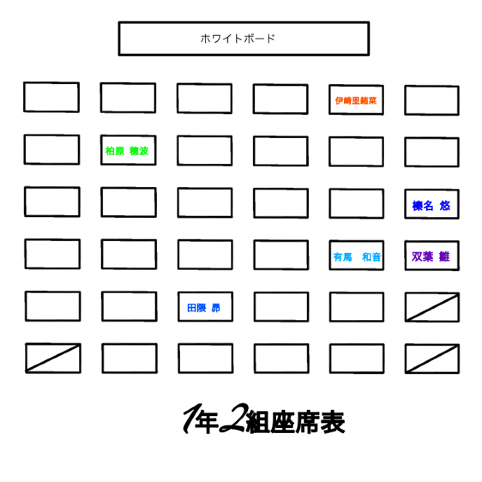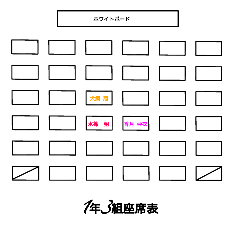 続いては1年3組(亜衣、朔、翔)の席!