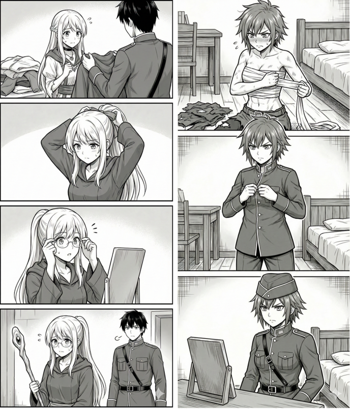 ティリーが、短く切り揃えられた自分の髪を鏡越しに見て、今にも叫び出しそうな顔をしていた。彼女の豊かな胸は、エースが「無限収納」から取り出した厚手の布できつく巻かれ、平坦な少年の体型へと偽装されている。