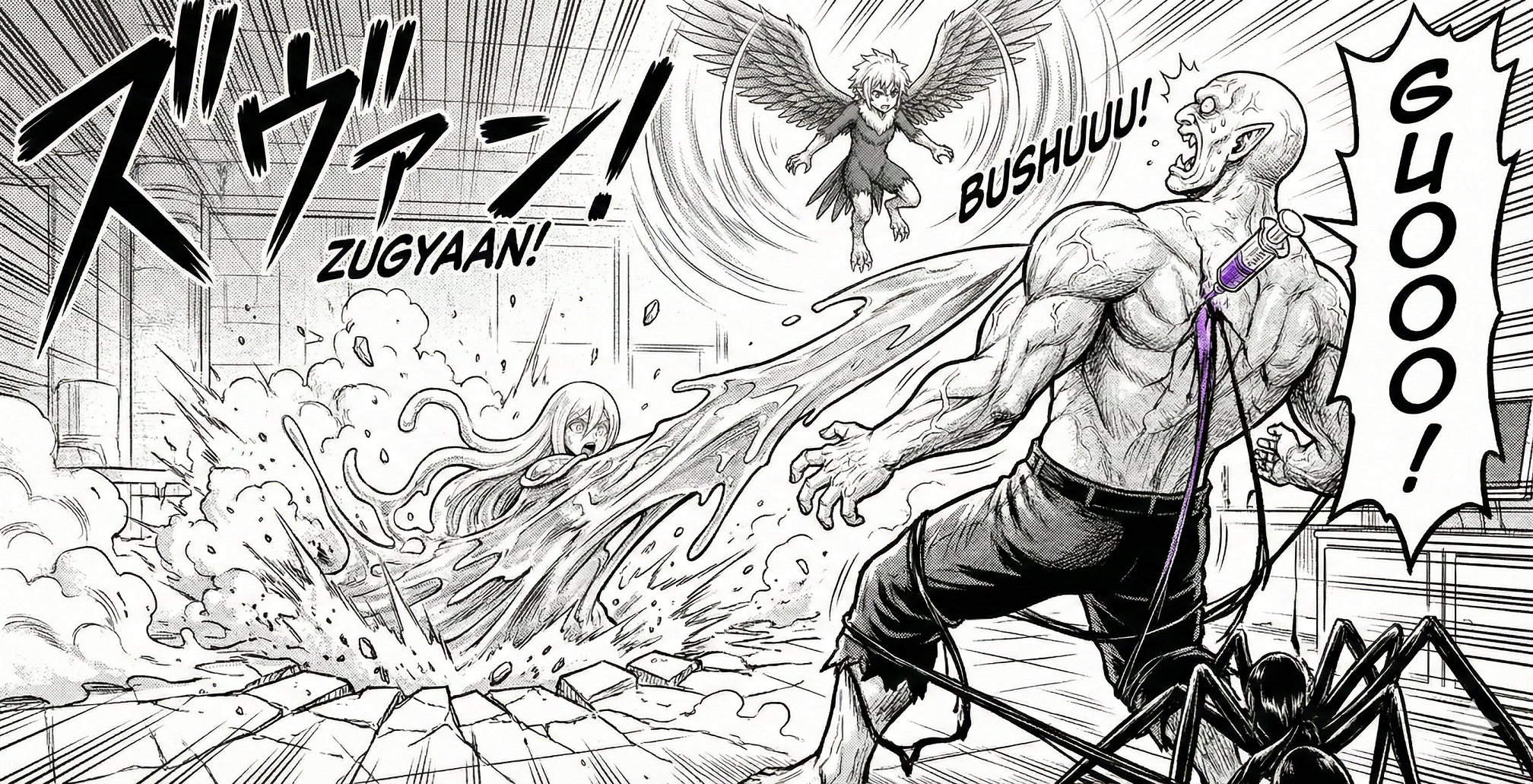 巨躯を誇る研究職のオーガーは、自らの腕を切り裂いたロゼの刃を忌々しげに睨みつけながら、懐から紫色の液体が詰まった注射器を取り出した。