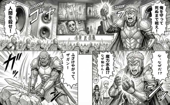 拘束を振り払おうとして無様にのたうち回るザガンが、錯乱したように懐を探り、真っ赤な『支配の宝珠』を取り出した。 今度は特定個人への命令ではない。全軍を強制的に操る、ザガンの最後の手札だ。