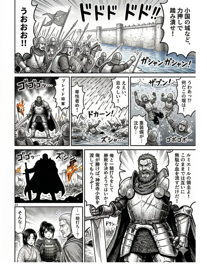 分厚い鋼鉄のプレートアーマーを着込んだザルドニア兵たちにとって、深い水場は文字通りの『死地』であった。一度足を踏み外せば、その重すぎる装備のせいで自力で浮かび上がることなど絶対に不可能。彼らは為す術もなく、深い水底へと次々に沈んでいく。