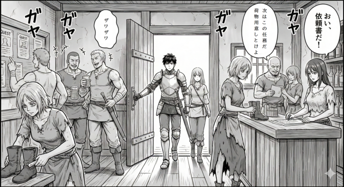 朝のギルドは、これから依頼(クエスト)に向かう男たちの活気に満ちている。……いや、正確には「男たちだけ」の活気だ。