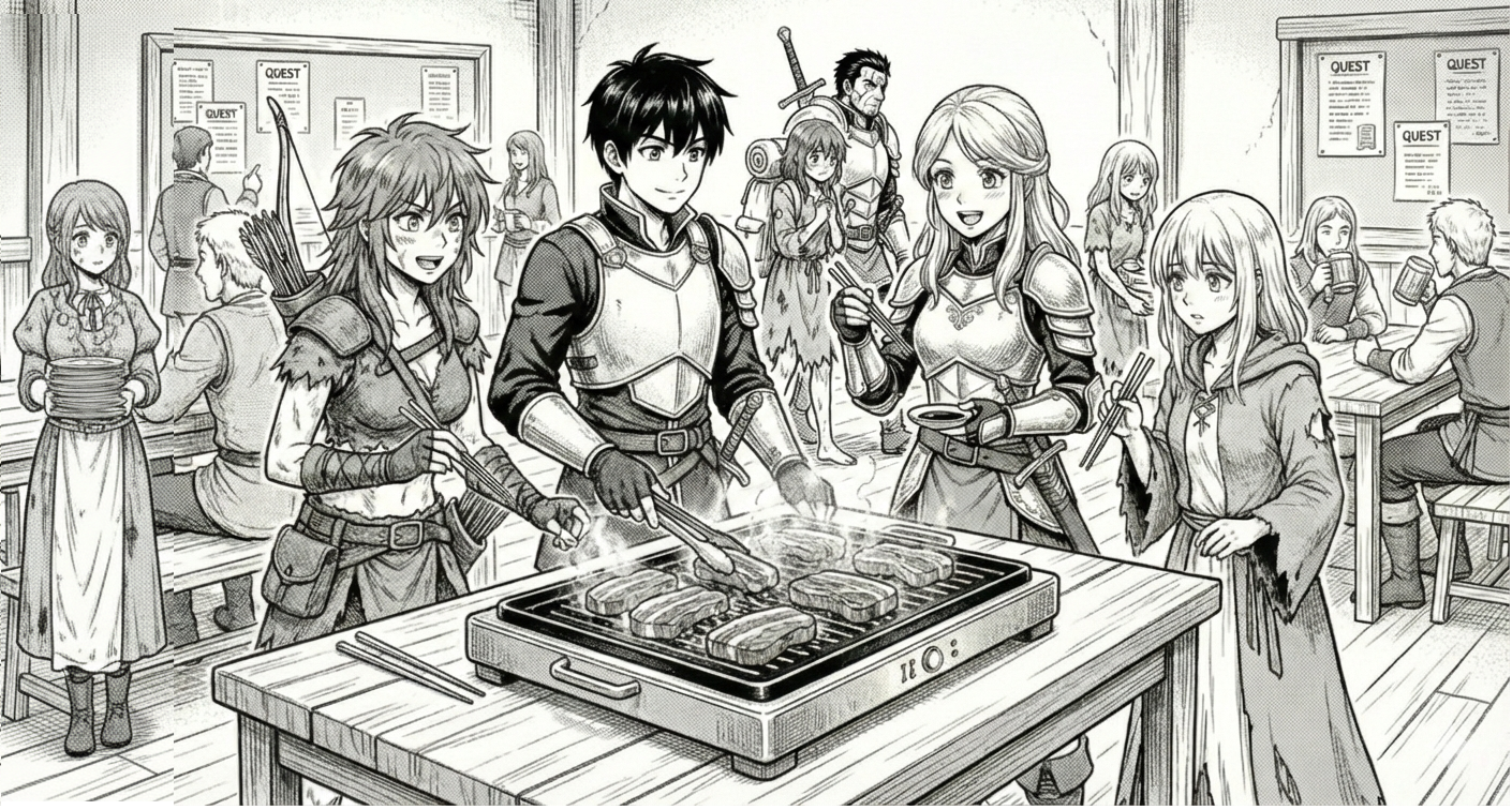 俺は次々と肉を焼き続けた。美味しい食事の前では、性別も身分も関係ない。