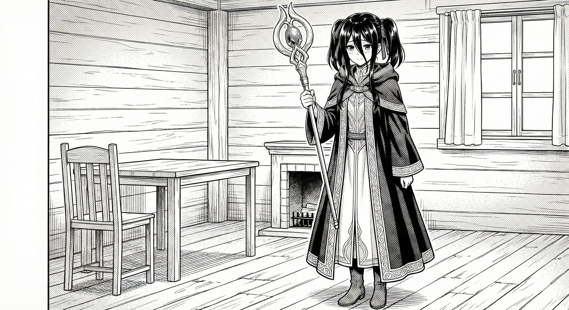 その夜、リリスは鏡の前で何度も自分の新しいローブ姿とツインテールを確認していた。リボンを外したりつけ直したり、何度も何度も。