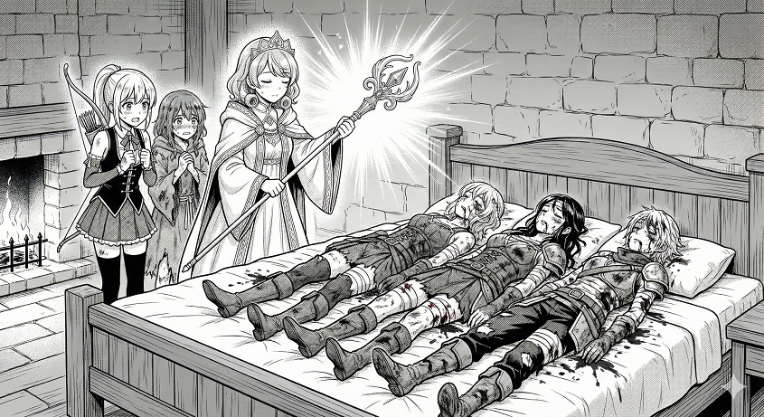 「金の問題じゃねぇよ。仮に中級ポーションがあったとしても、意識不明じゃ飲ませられねぇ。それに、こんな状態の女に高価な薬を使う価値なんてねえよ。新しいメンバーを探しな。女なんて、掃いて捨てるほどいるだろ?」