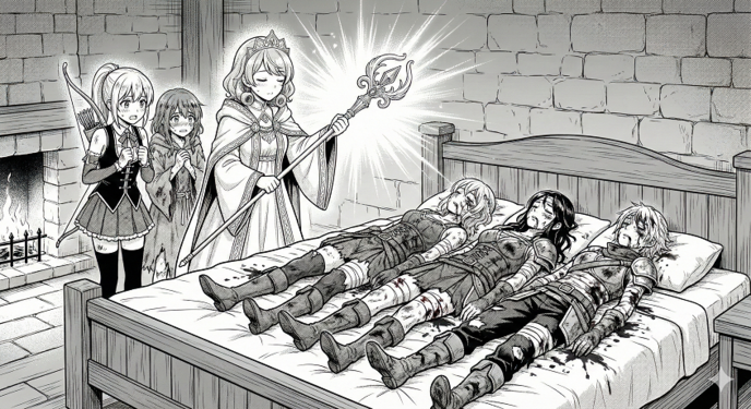 担架に乗せられ、親切な冒険者たちに運ばれてきたのは、ミアのパーティメンバーであるデイジー、ベラ、ゾーイの三人だった。