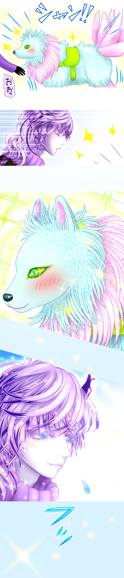 『大丈夫、この子は噛んだりしない。 見た目はクールで恐そうだけど、眼を見れば分かる。 とても優しい子だよ。 ただちょっと、傷つくのが苦手なだけなんだ・・ふふ、俺のモルみたいにね。』