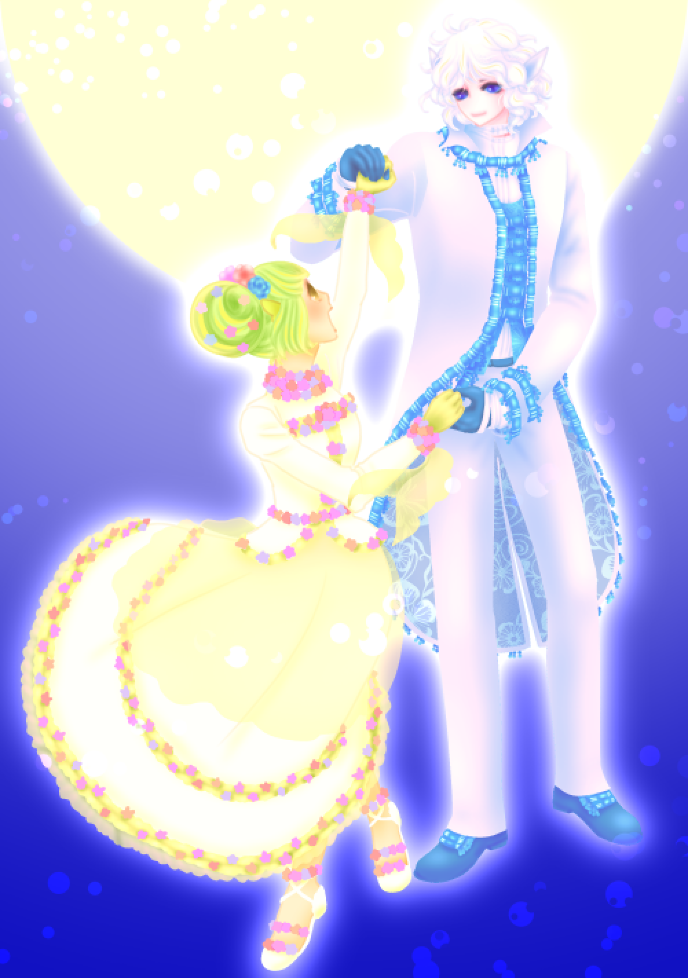 柔らかく輝く月が照らす丘の上には色とりどりの花々を揺らすそよ風が芳醇な香りを届けている。