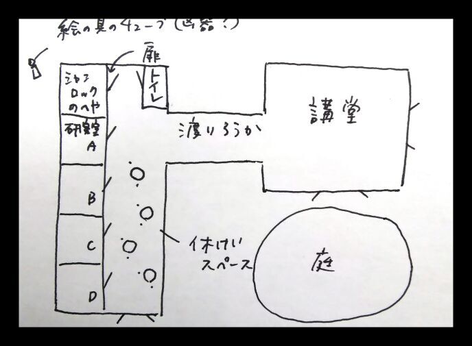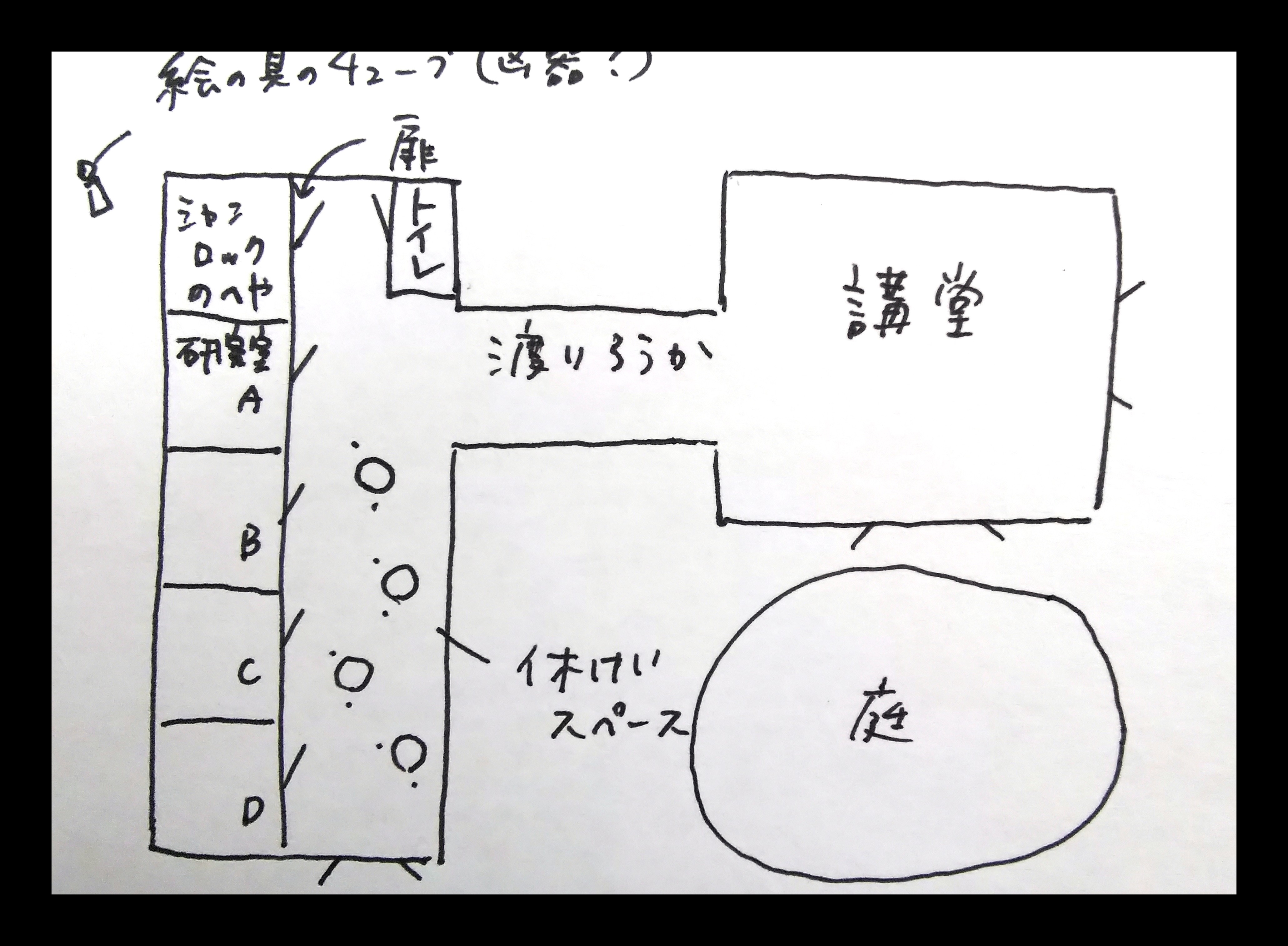 え、場所ですか?この研究室の先に広い講堂があるでしょう?この渡り廊下を進んで……え、よくわからない?そんなの見りゃわかるでしょう?は、図に書いて寄越せって?ああもうわかりましたよ、あとで建物の図面をお渡しします(図1参照)。こんなの、誰が見るのか……。