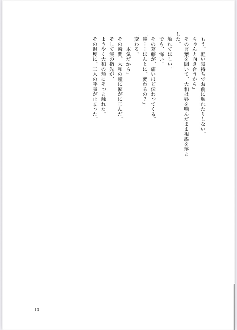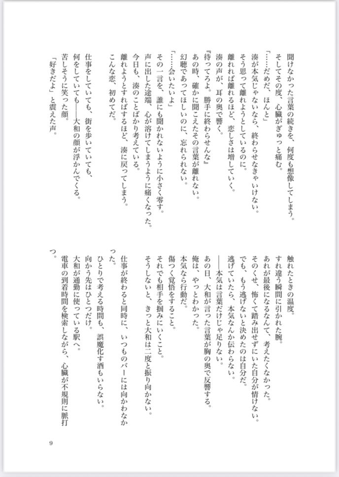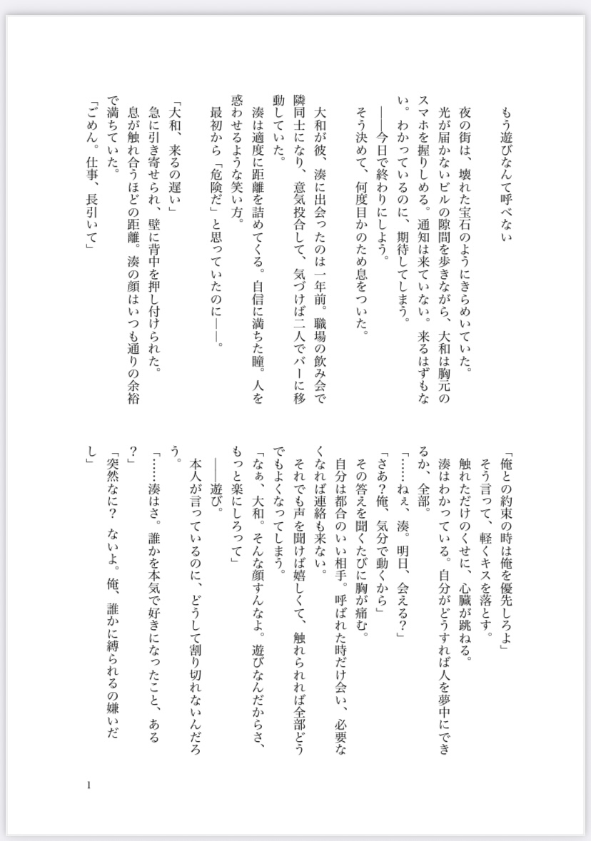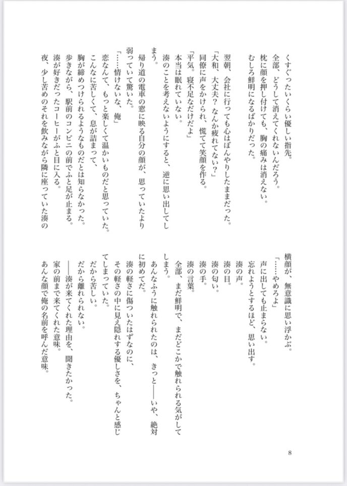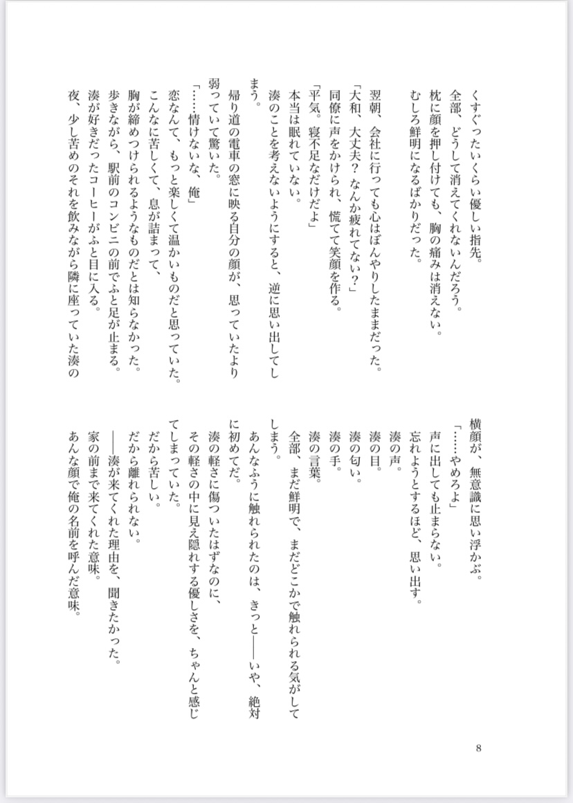 大和が彼、湊に出会ったのは一年前。職場の飲み会で隣同士になり、意気投合して、気づけば二人でバーに移動していた。